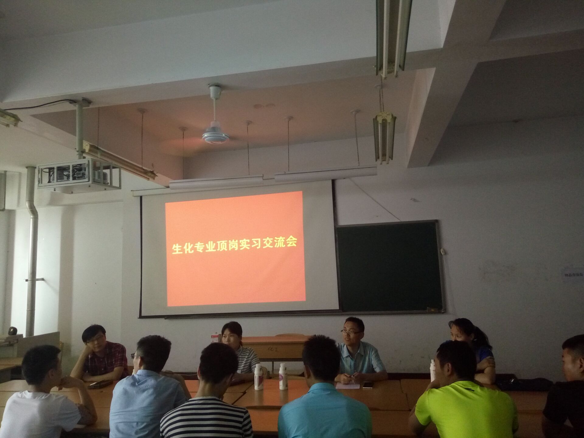 2016年6月1日上午10点qm球盟会13级生物化工工艺专业于二教517教室召开了顶岗实习交流大会。何芳老师、原东林老师、刘中阳老师、李艳梅老师共同出席了本次交流会。